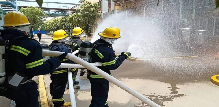 6月14日13:00,本次參加演練共計100人共同參加。演練使用到自給式空氣呼吸器、防護手套、醫藥箱、吸附棉、收集桶、消防水帶、水霧槍頭、對講機等物資。演練現場(chǎng)設總指揮、副總指揮、疏散引導組、安全警戒隊、安全救護組、義務(wù)化救隊、現場(chǎng)消防隊、環(huán)境監測隊等參與。演練根據演練方案,演練共分為三個(gè)流程:一是發(fā)現異常,發(fā)生部門(mén)人員受傷,迅速上報;二是觸發(fā)應急預案,相關(guān)部門(mén)分工明確,快速響應;三是解決異常,全員撤離成功。