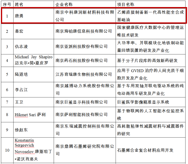 日前,南京市人才工作領(lǐng)導小組辦公室對 2017 年度“科技頂尖專(zhuān)家集聚計劃” 入選人才項目進(jìn)行公示。上??爹i科技有限公司與中科院上海有機化學(xué)研究所共同投資的南京中科康潤新材料科技有限公司(以下簡(jiǎn)稱(chēng)南京康潤)首席科學(xué)家唐勇院士研究團隊的“乙烯直接制備新一代高性能全合成基礎油”成功入選該重量級的人才項目。